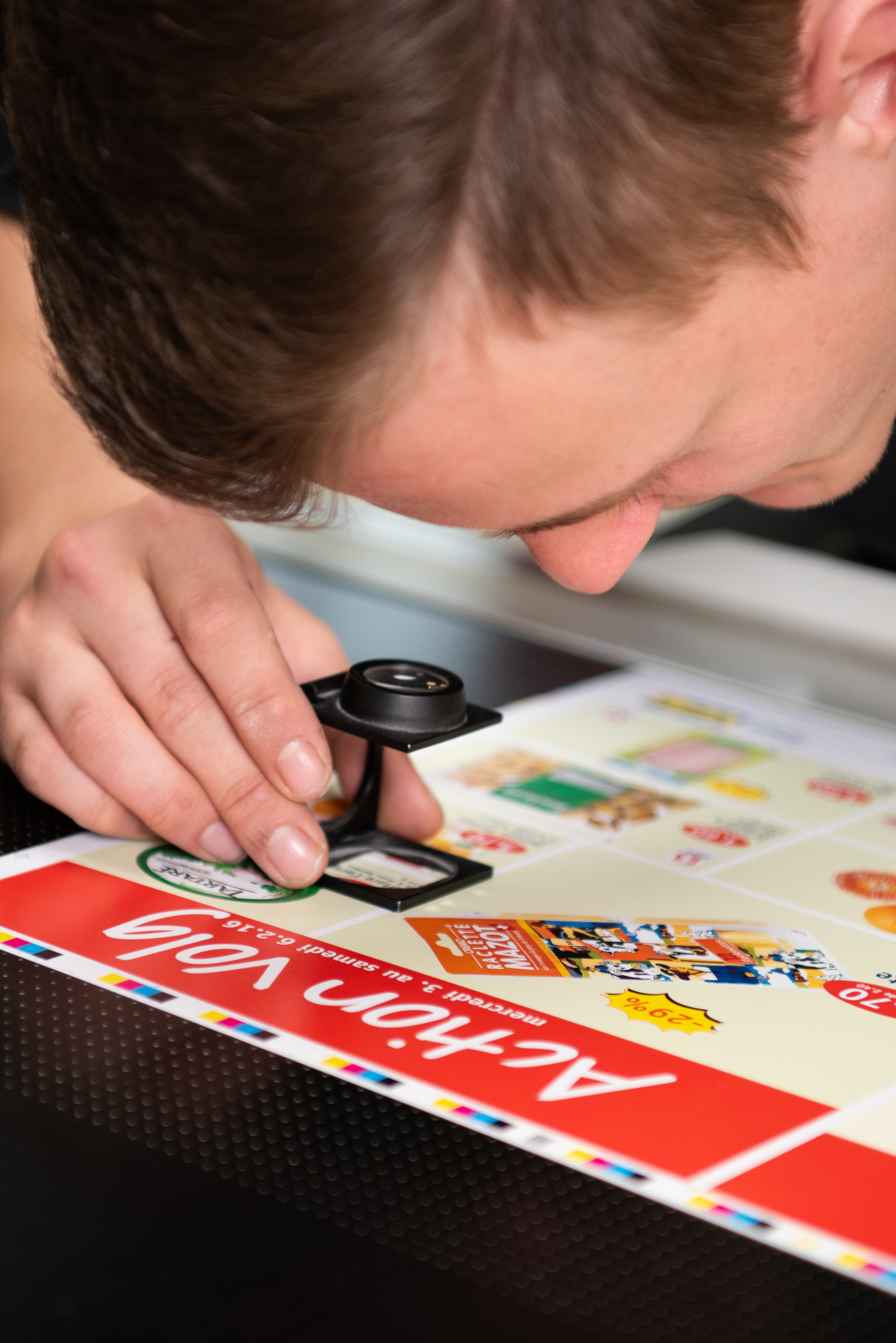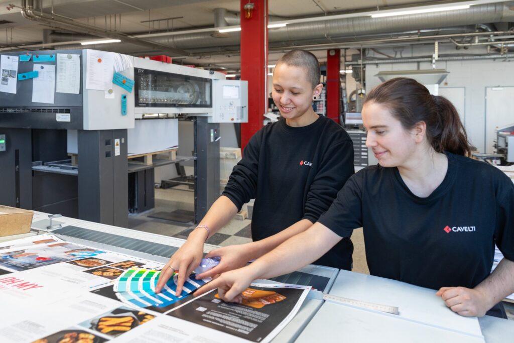 In der Ausbildung zum Medientechnologen EFZ arbeiten unsere Lernenden von Anfang an praxisnah mit und lernen, Verantwortung für Maschinen, Materialien und Druckprozesse zu übernehmen.