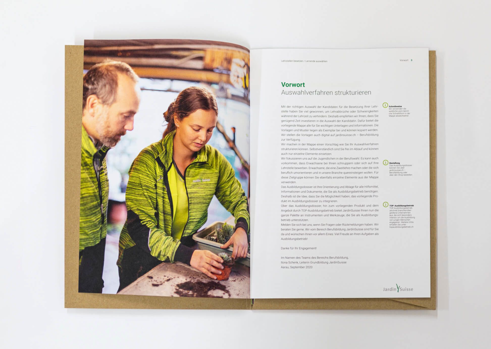 Hätten Sie gewusst, dass jährlich über 1000 Jugendliche eine Lehre in der Grünen Branche beginnen? JardinSuisse, der Unternehmerverband der Grünen Branche, unterstützt seine Ausbildungsbetriebe mit Ausbildungsdossiers und «Schnuppermappen» für Ausbildner. Alles dies mit dem Ziel, kompetente, motivierte Fachfrauen und -männer der Gartenberufe auszubilden beziehungsweise diese für die Kreativität und Vielseitigkeit der vier verschiedenen Berufsrichtungen zu begeistern.