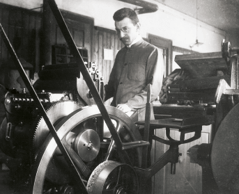 Wohn- und Druckereigebäude an der Gutenbergstrasse in Gossau und Eröffnung der Buchhandlung und Papeterie.